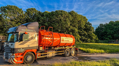 While attending an emergency environmental call-out in Malton, one of our rigid 6-wheeler tankers — proudly wrapped in Hull 4 Heroes charity livery — happened to be on site as the nation paused for the two minutes’ silence.